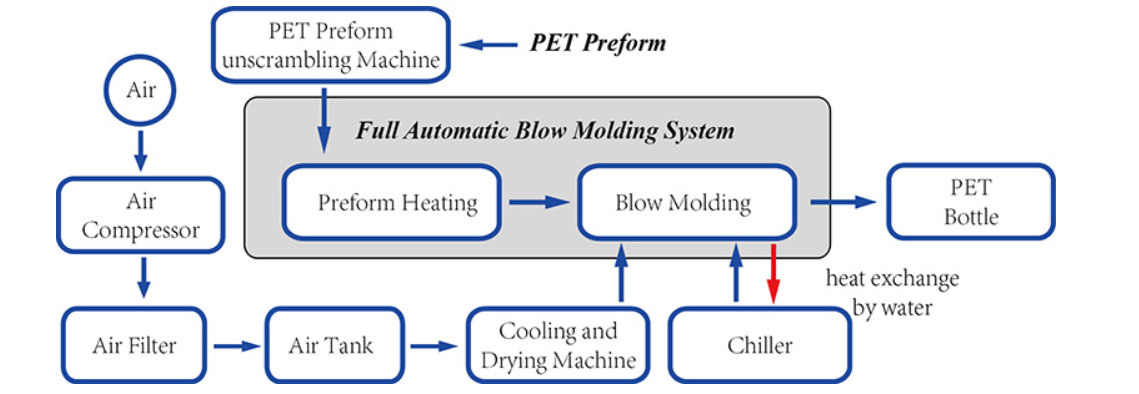 High pressure air compressor: provides enough air pressure for bottle molding process