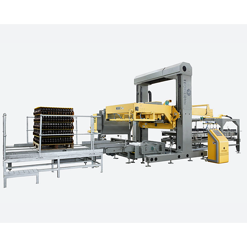 Flexible layout and configuration. Simple installation. Change palletizing format directly from HMl and change bottle formula with one click. Use toothed timing belt to reduce maintenance costs. Adopt Category 3 safety design. Bottle palletizing, layer deposit, row deposit, bottle row deposit are all available.